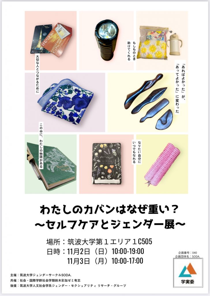 本学類生が代表を務める学生団体SODA.が中心となって企画した、雙峰祭学術企画「わたしのカバンはなぜ重い?~セルフケアとジェンダー展~」が、朝日新聞・朝日小学生新聞・朝日中高生新聞で紹介されました。