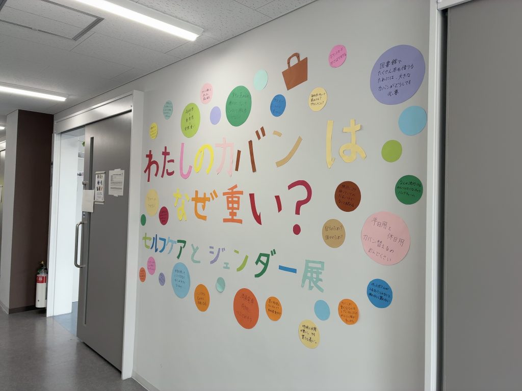 本展示は、「カバンの中身」という身近なテーマを切り口に、セルフケアや備え、他者への気遣いといった日常的な実践が、どのようにジェンダー規範と結びついているのかを可視化する試みです。展示では、約70人分のカバンの中身やエピソードをもとに、来場者が自身の経験と重ねながら考えられる構成が工夫されました。